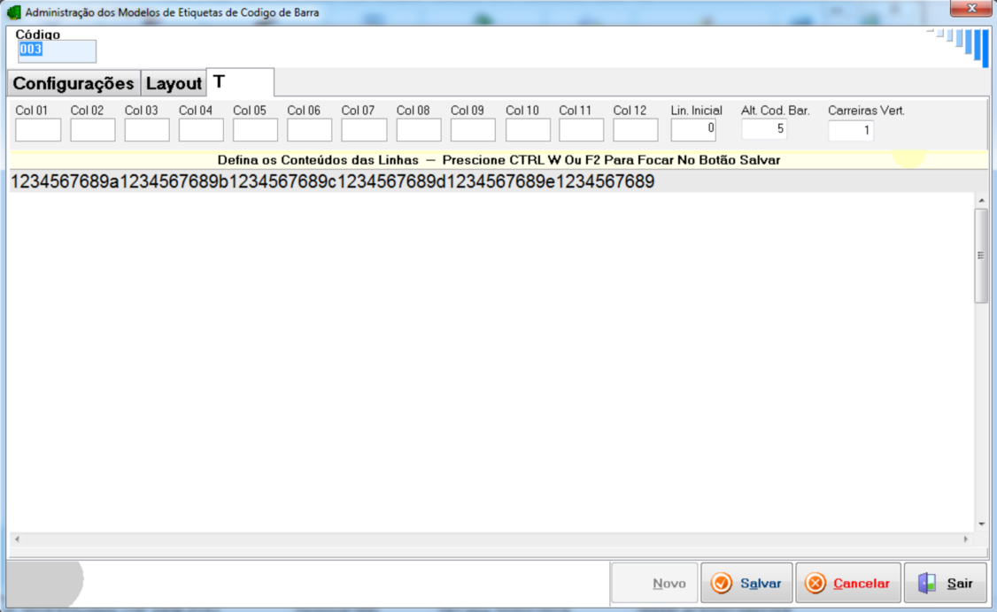 Essa aba é utilizada para configuração de Etiquetas pelo sistema Cash ou Exportações de informações para outro programa de etiqueta.