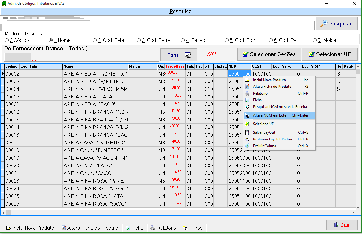 Alteraração de NCM em Lote |