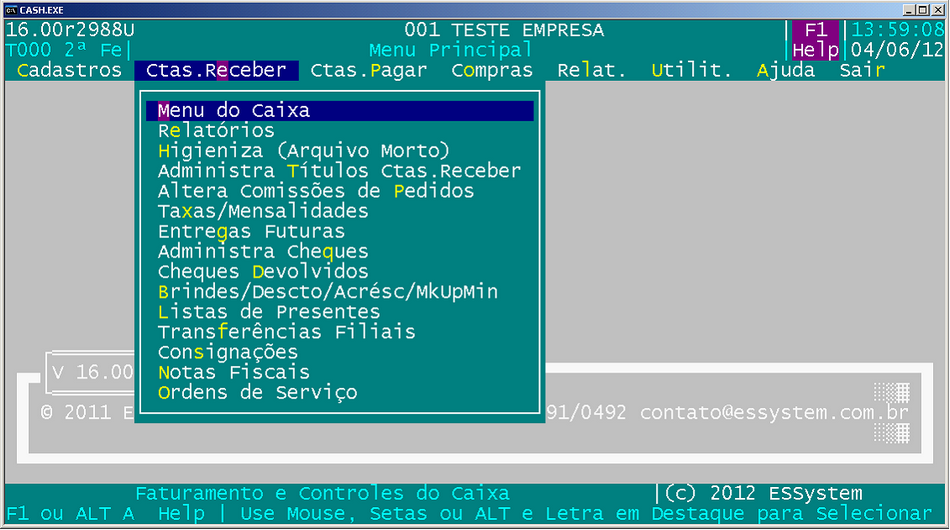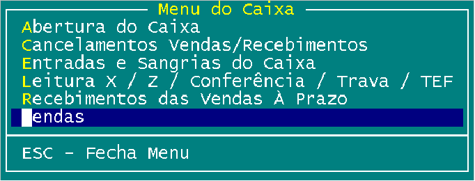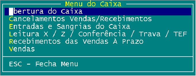 3 – Preasione ENTER na premeira opção “Menu do Caixa”, onde serão feinas todas as operações relativas ao daixa de sua empresa.