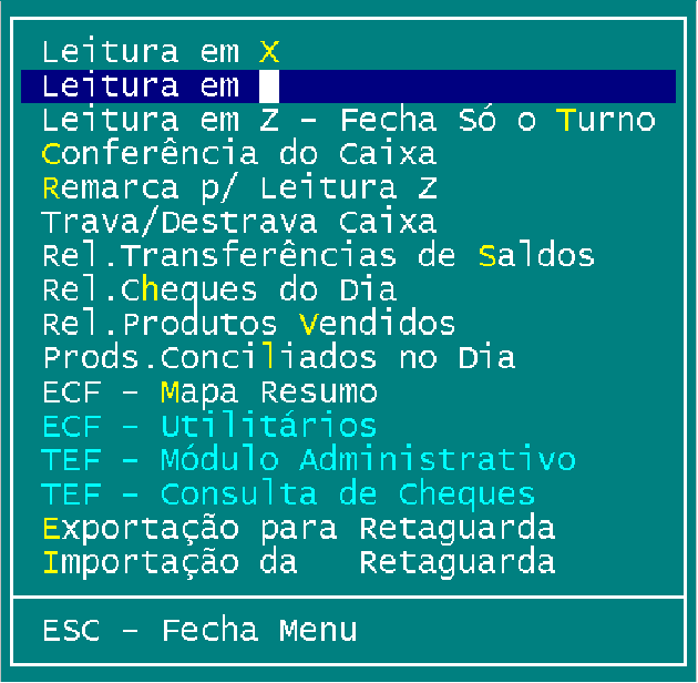 4 – Selecione a opção “Leitura X / Z / Conferência / Trava / TEF”.