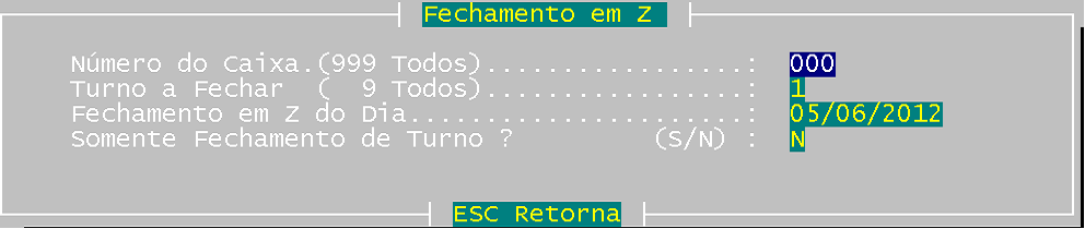 Somente Fechamento de Turno? (S/N) – se você selecionar “S” (sim) o caixa será fechado e poderá ser aberto na mesma data, útil se o operador do caixa é trocado durante o dia. O operador que sai faz o fechamento, e após o caixa é reaberto na mesma data, pelo próximo operador. Se este não é o seu caso e você fará o fechamento de caixa apenas ao final do expediente, selecione “N” (não).