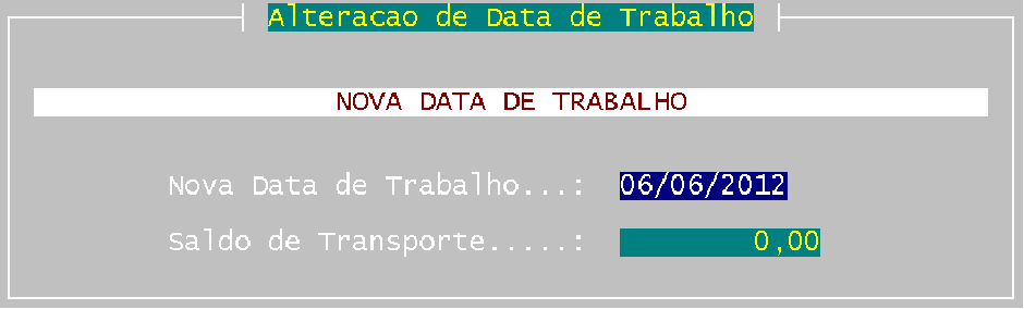 8 – Após será pedida a nova data de trabalho. No caso de fechamento de turno o sistema colocará automaticamente a data do mesmo dia, para fechamentos normais, o sistema colocará da data do dia subseqüente. Lembrando que você deverá colocar sempre a data do próximo dia de trabalho, então, se você não for trabalhar no dia subseqüente (por exemplo, aos domingos) você deverá alterar a data para o próximo dia de trabalho.