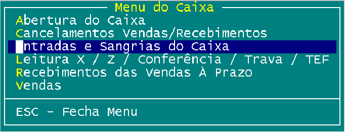 4 – Selecione a opção “Entradas e Sangrias do Caixa”.