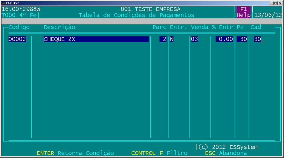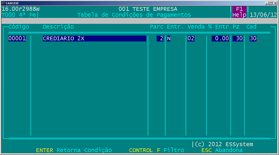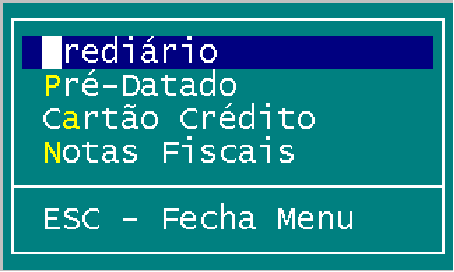 Após selecionar esta opção, selecione a condição de pagamento dentre as cadastradas. Pressione “ENTER” para confirmar.