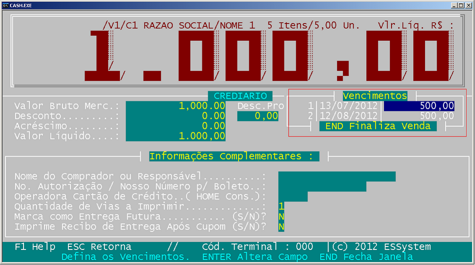 É através deste fechamento que será possível a emissão de notas fiscais. Após pressionar “END”, será exibida a janela abaixo: