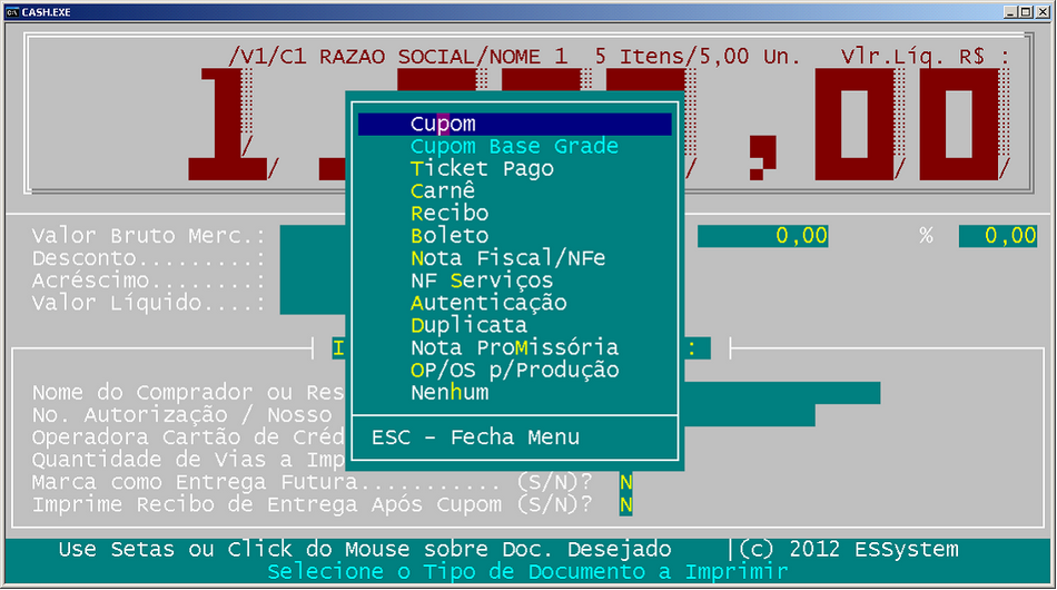 Se você tem instalado um ECF ou está configurado para Nota Fiscal essa tela nem irá aparecer, sendo impresso automaticamente o Cupom Fiscal ou a NF, conforme esteja configurado. Além, disso, no caso do ECF, os itens já vão sendo impressos conforme você os fatura.