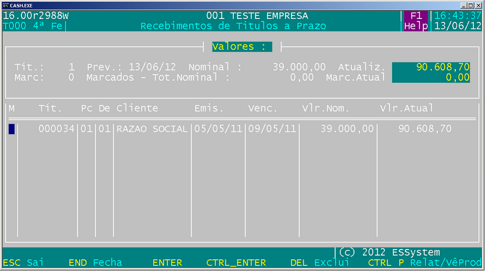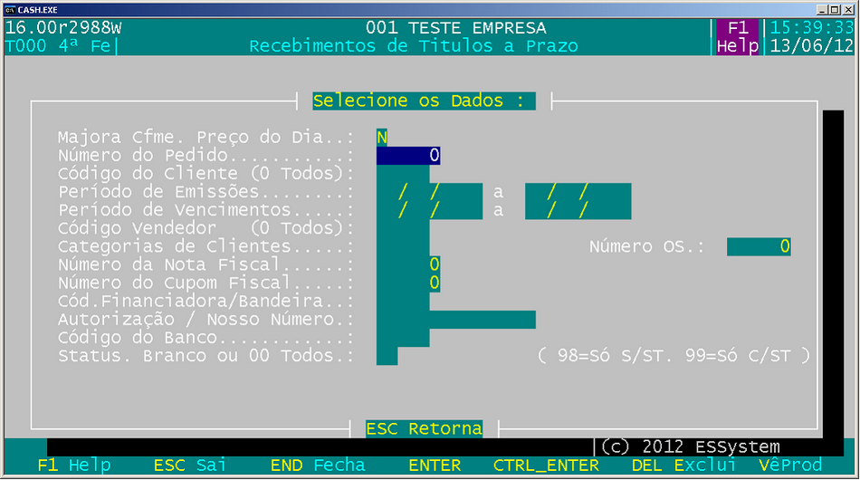 Código do Cliente – pesquise títulos do cliente selecionado. Você pode digitar o código do cliente neste campo (caso saiba) ou pesquisar em seu cadastro de clientes, pressionando a tecla “HOME”.