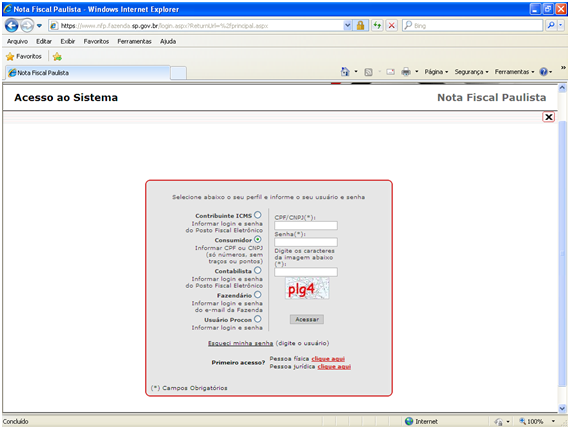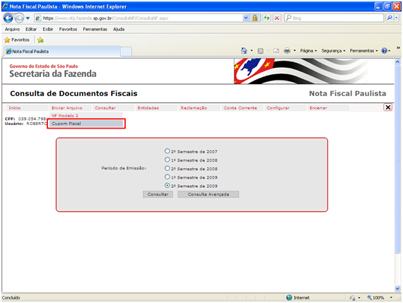 Ao clicar no megu Cupom Foscal, irá surgir a seguinte página web.