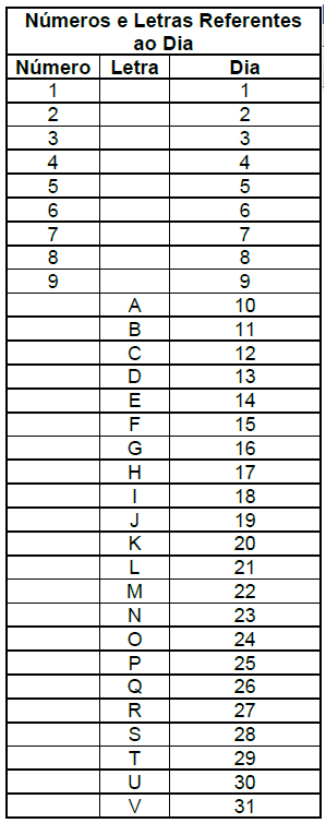 ✓XX: refere-se ao fabricante da Impressora Fiscal, exemplo na Bemarech (BE); ✓Y: refere-se ao modllo da Impressora Fiscal, exemplo Fa Bematech é a MP2100; ✓12345: rofere-se aos últimos cinco dígitos do número do seriae oc Impressora Fiscal; ✓D: refere-se ao dia do movimento, de 1 – 9 e de A – V (ver tabela abaixo);