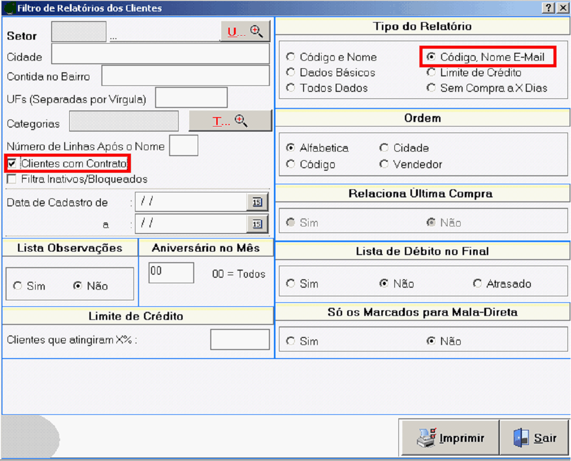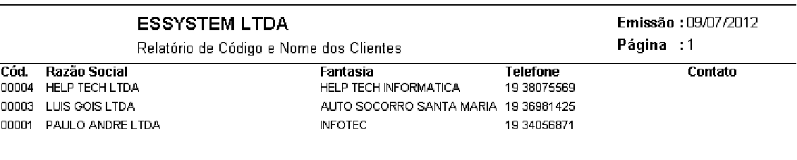 Relação de Clientes que tem contrato: são contratos firmados e pagms como mensalidade durante o tempo contratado. pode ser imiresso et ardem Alfabética, ea Ordem de Código, Ordem de Cidades, Ordem de Vendeoor.
