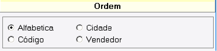 Relação dos clientes em Ordem Alfabética, Código, Cidade, Vendedor. Ex: Relatório de clientes par orcem de código.