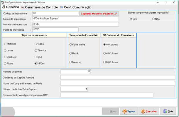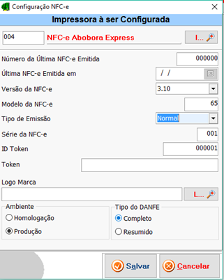 Configurações para emissão da NFC-e |