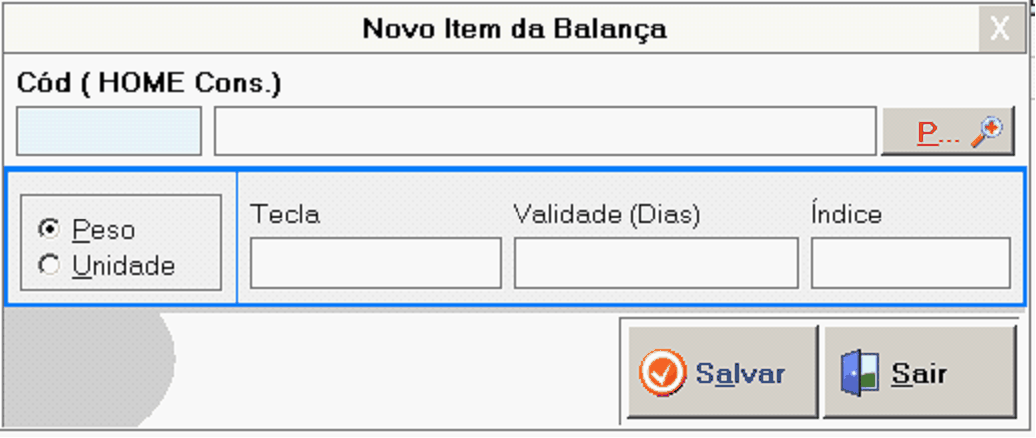 Ao clicarmos em nova balança, a tela de cadastro será essa, sendo os campos: