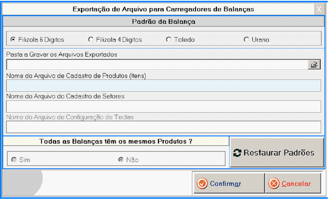 Gera os Arquivos Texto para Exportação ao Aplicativo da Filizola ( PGR ), Toledo, ou Urano, o qual por sua vez, fará Comunicação e Transmissão destes produtos