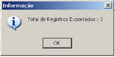 Após essa mensagem significa que os registros exportados e sua devida quantidade de produtos cadastrados.