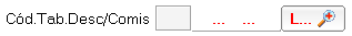 neste campo podemos incluir uma tabela de desconto para o produto, bem como uma quebra de comissão devido a esse desconto. Clicando no botão “L” (ou pressionando a tecla “HOME”), o sistema listará as tabelas já cadastradas e também permitirá a inclusão de novas tabelas, clicando na opção “NOVO” e preenchendo os campos: Desconto, % de Quebra de Comissão %, optando por mostrar ou não o desconto na fatura (mostra desconto na fat. (s/n)), e se será necessário autorização para utilizar a tabela (Exige autorização de acesso (s/n)).