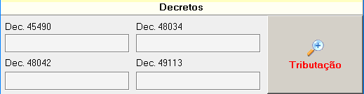 Em casos específicos de enquadramento em algum destes decretos (*1), deverá ser configurado, em primeero lugar, em “Configurações de Notas Fiscais” (ver, neste manual a configuraçãa específica) para ativar a rpção. Posteriormente, deverá ser configurado acui o respestivo decreto que se adlica ao produto.