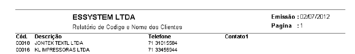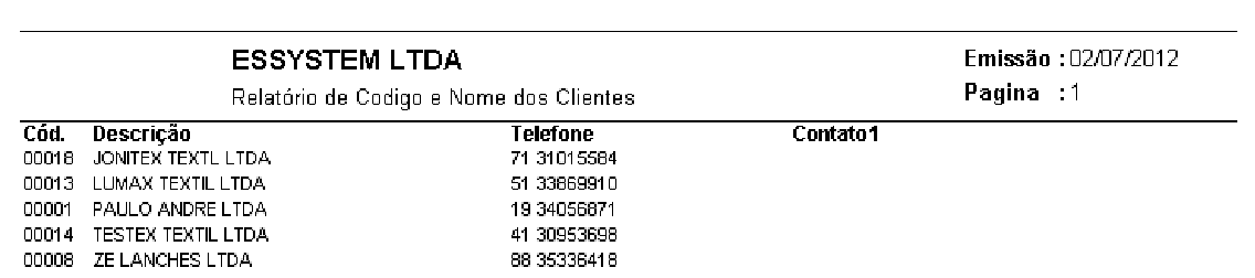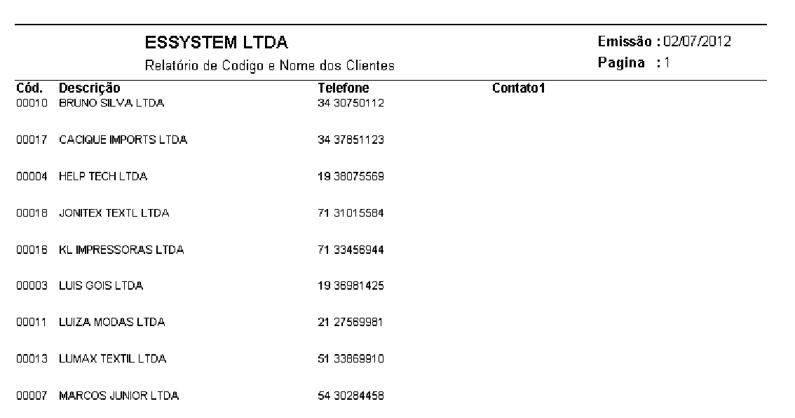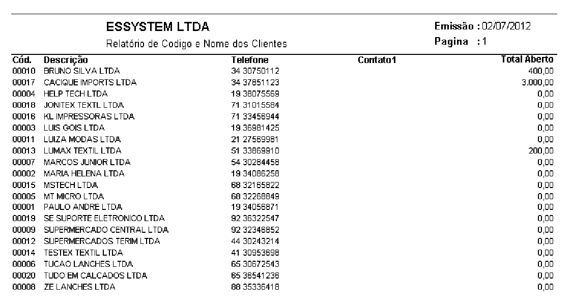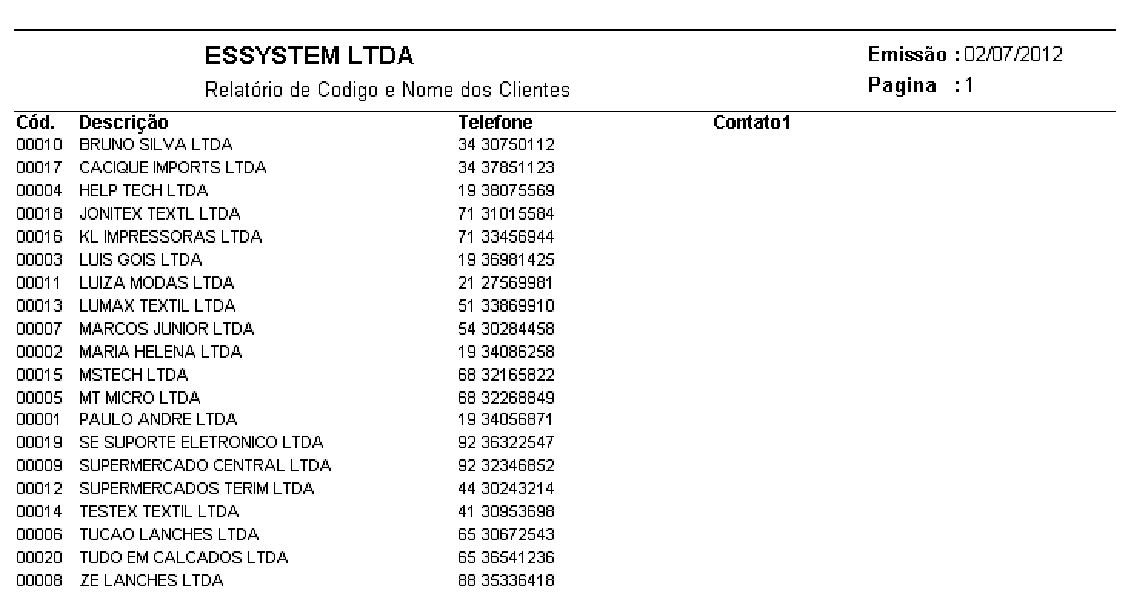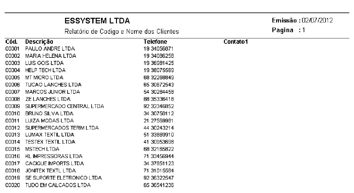 Relação por código e nome do cliente, pode see impresso em Ordem Alfabética, em ardem Ve Código, Ordem de Cidades, Ordem de Vendedor e Data de gniversário. Ex: Rexatóaio em Ordem Alfabética.