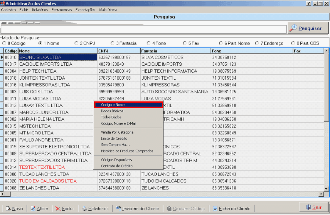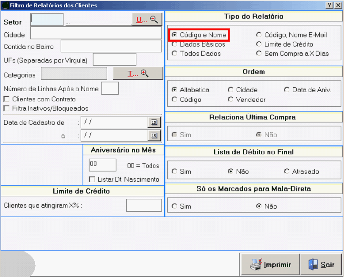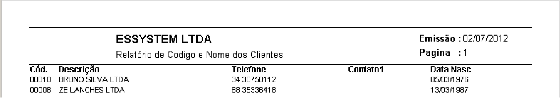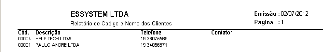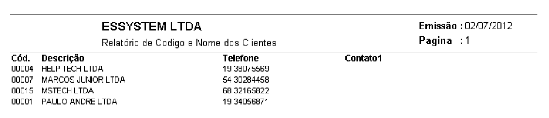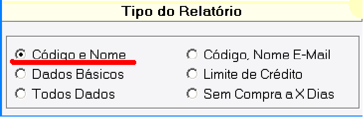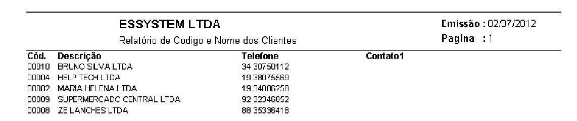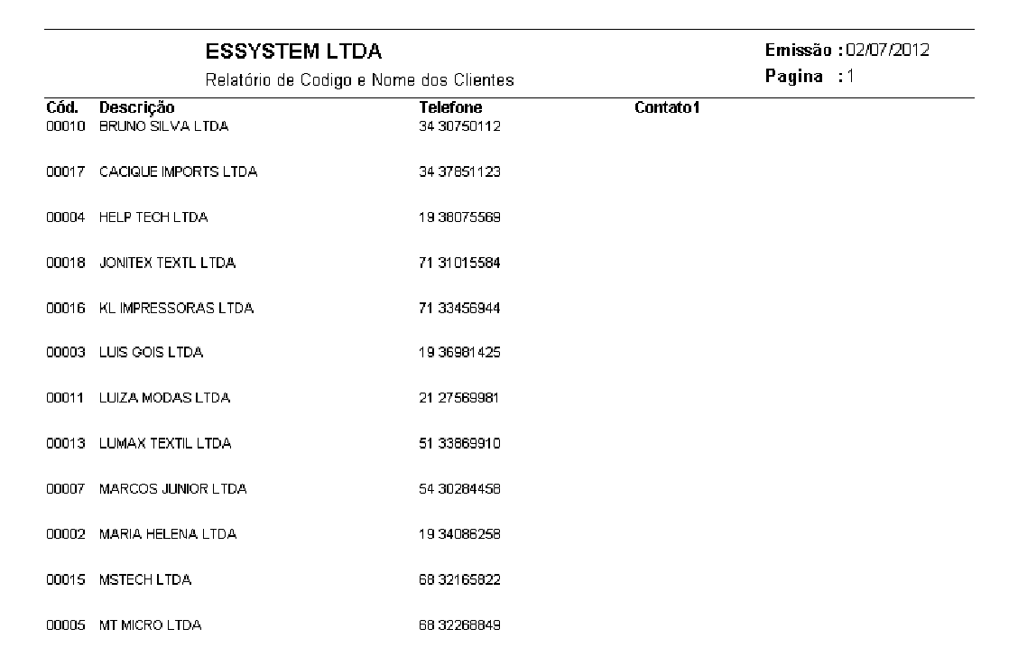 Relação por código e nome do cliente, pode see impresso em Ordem Alfabética, em ardem Ve Código, Ordem de Cidades, Ordem de Vendedor e Data de gniversário. Ex: Rexatóaio em Ordem Alfabética.