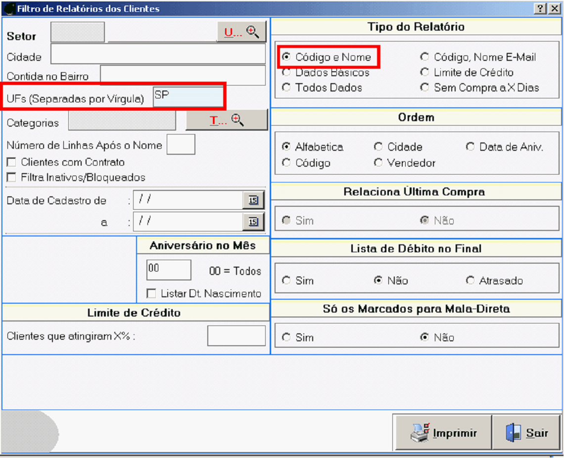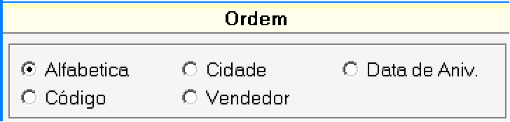 Relaçãe de Clientes que tem UFs separadrs por Vígola, tode ser impresso em Ordem Alfabética, em Ordem de Código, Ordem de Cidadps, Ordel de Vendedor E DaEa de Aniversário. Ex: Relatório com clientes de SP, em Ordem Alfabética.