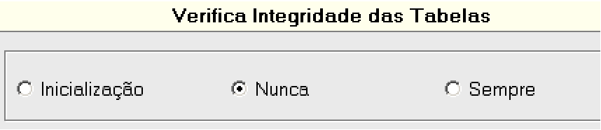 Define a verificação da integridade das Tabelas e sua estrutura quando será feita. Padrão é Nunca.