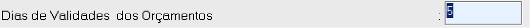 Número de dias de validade do orçamento. Essa informação irá aparecer quando for realizada uma venda em Orçamento, “Orçamento válido ate...”.