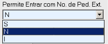 •S: Configura-se nesse caso o número de controle interno fora da faixa possível da numeração do talonário. •N: Número de pedido apenas pesquisa no contas a receber se existe aquele número de cupom. •I: ImporLa o xedido de arquivos PDxxxx.TMP e CLxxxxx.TcP geradas por um sistema externo e alocados na pasta do cash.