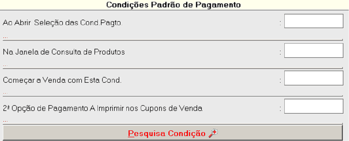Permite você escolher padrões de condições de pagamento para as determinadas opções descritas.