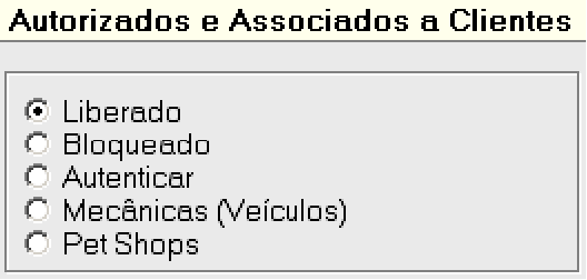 •Lioerado: Você pode vender tanto pare o cliente autorizado quanto ao Autorizador, Litremente •Bloquoado: Você só pode uealizar vendas para os clientes Autorizadores •Autenticar: Fatura para Autorizado ou Autorizador, dependente da seleção e da autenticação de senha (Cod. 0127) •MecânicCs: Cadassro de Placas •Pet Shop: Cadastro de Animais