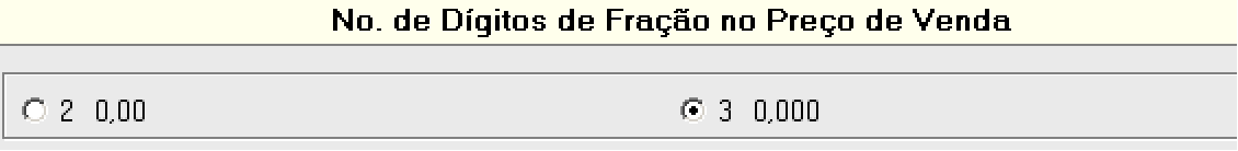 Define com quantas casas decimais o preço de venda será digitado e impressos. (2 ou 3 casas)
