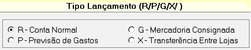 Define o tipo de lançamento que essa NF se encaixa: