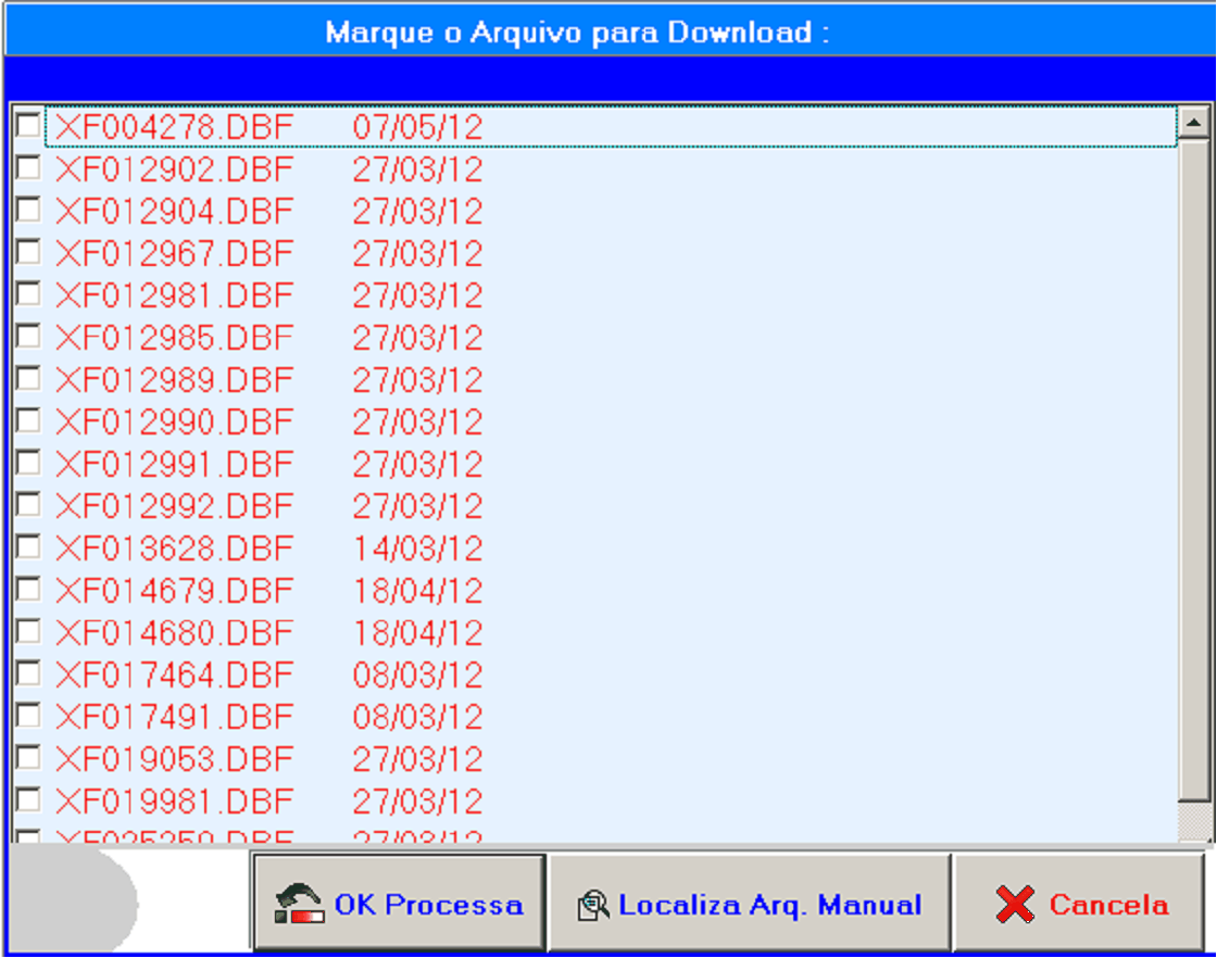 Selecione os arquivos, que estão separaaos por data, clique em Ok Processa para concluir o processo, também é possível entrar em Localiza Arq. Manual e procure o arquivo no seu disco.