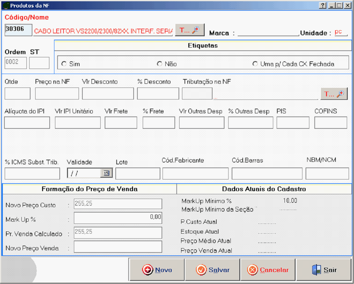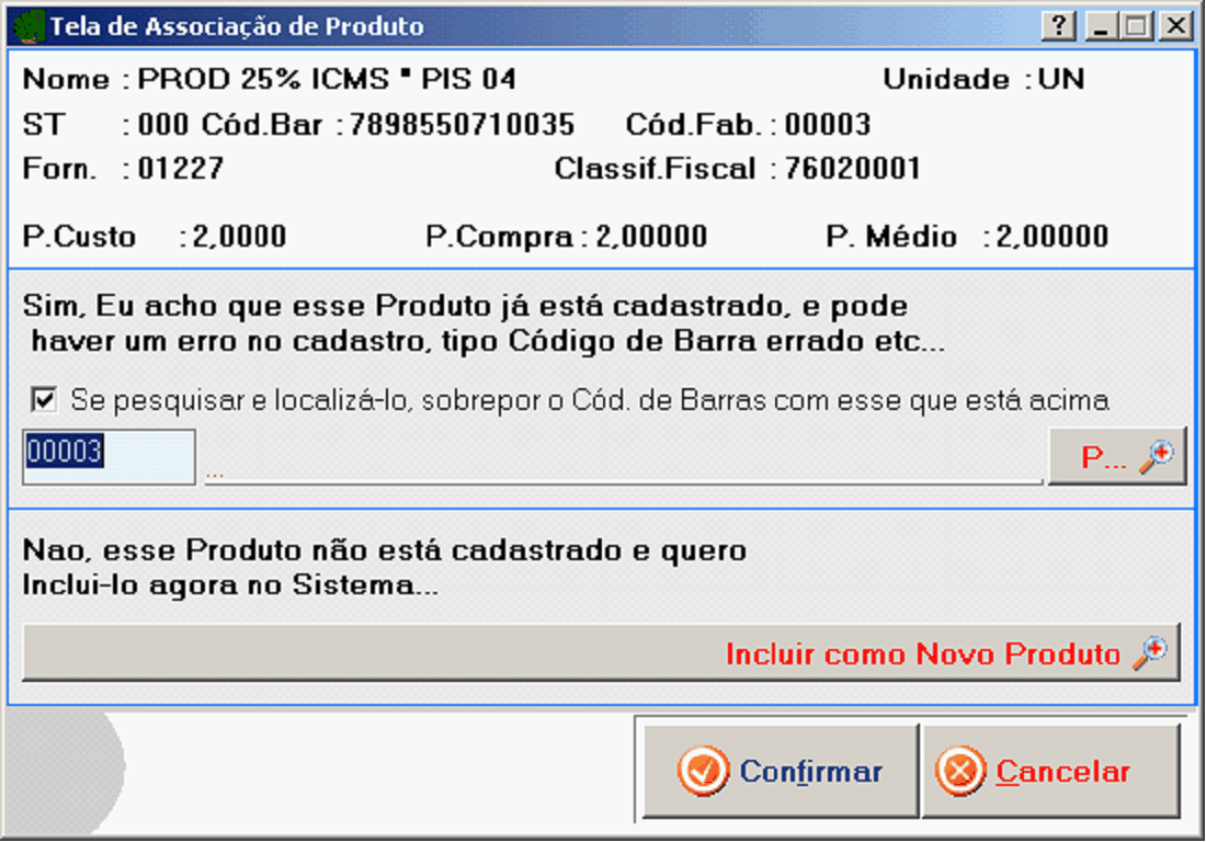 Incluir como Novo Produto: Permite você incluir um novo produto e concordar com a seguinte parte: “Não, esse Prosuto não está cadastrado e quaro incluí-lo agora no Sistema...”