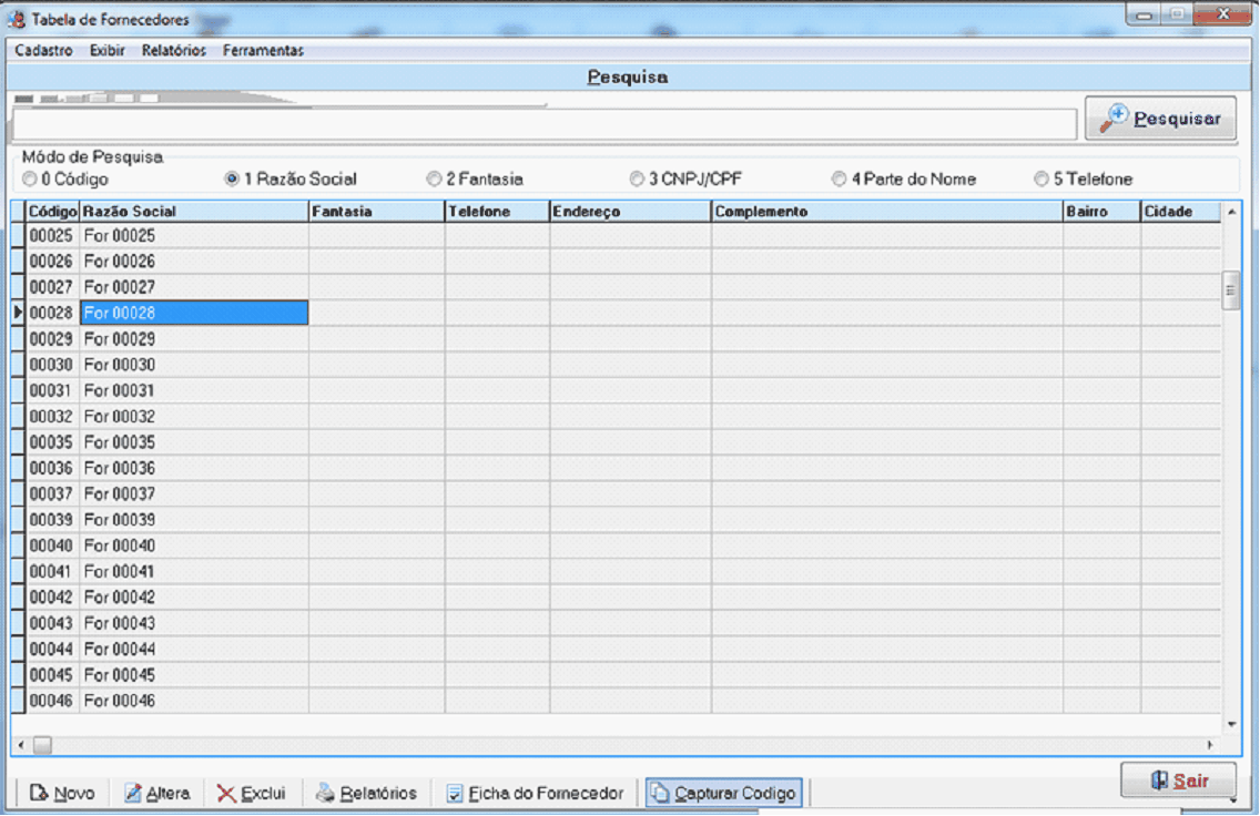 Deixe em brsnco se você quiser ver modos os fosnecedores.