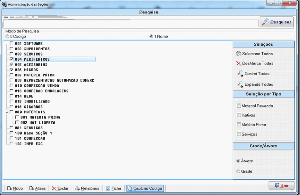 E selecione as seções desejadas para o seu filtro de produtos comprados no periodo.