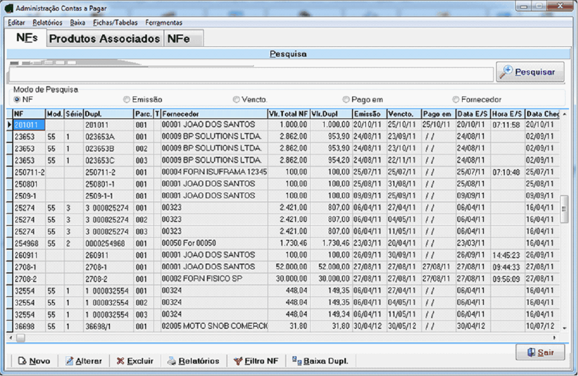 NFs no Período (Pagar e Pagas) Verifique as Contas que você tem a Pagar, Pagas ou Vencendo num período existente .