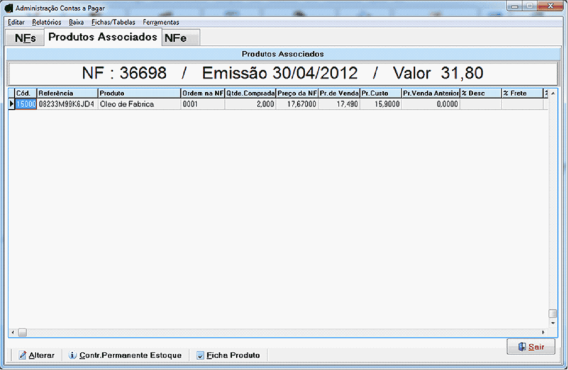 - Contnole Permanente EstoPue – Controle o seu estoque desse determinado produto associado a Nota Fiscal do seu Contas a Pagar.