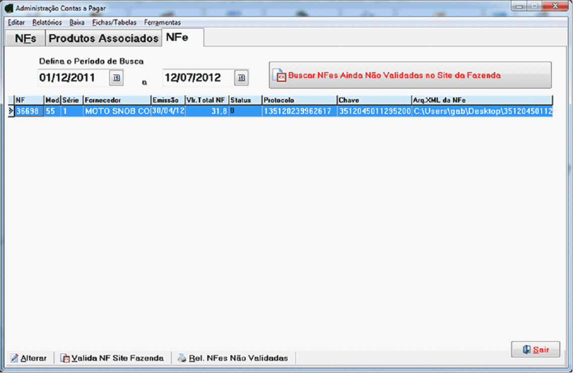 - Relatósio NFes Não Validadas – Tire um relatório das Notas Fiscais que ainda não foram validades em seu Contas a Pagar.