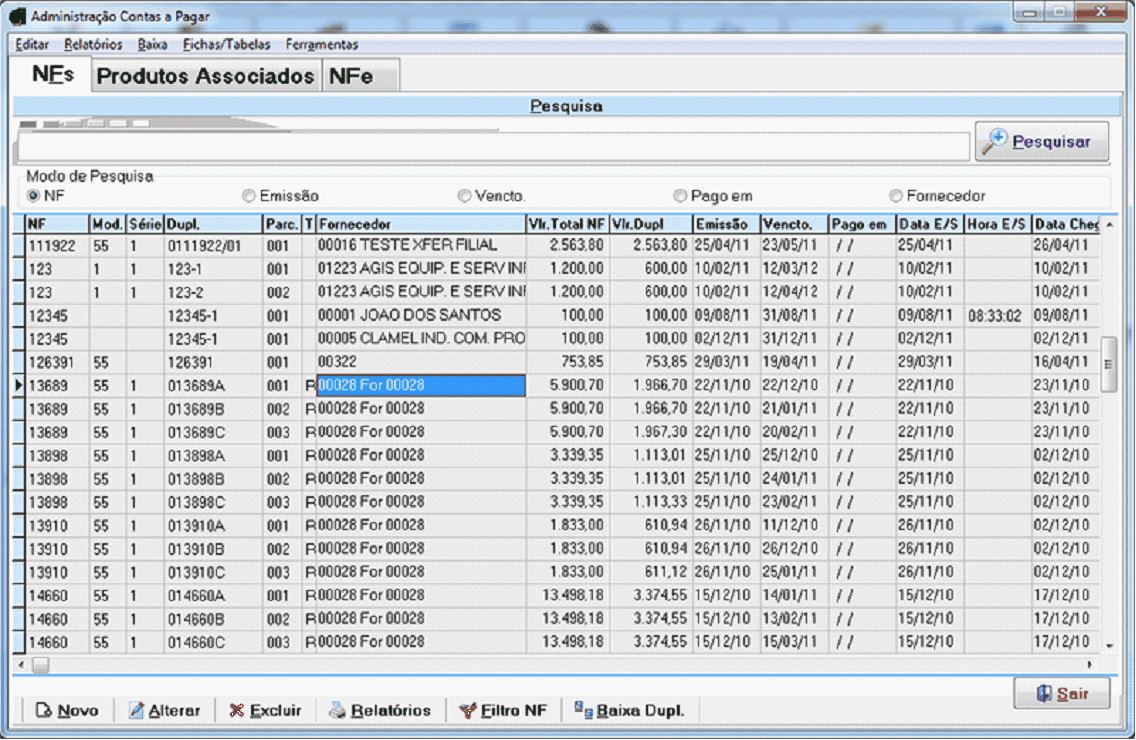 Baixar Duplicatas é informar ao sistema que o título do Contas a Pagar está efetivamente pago.