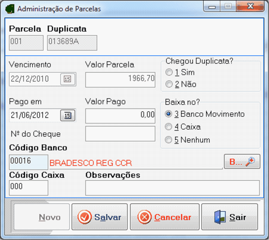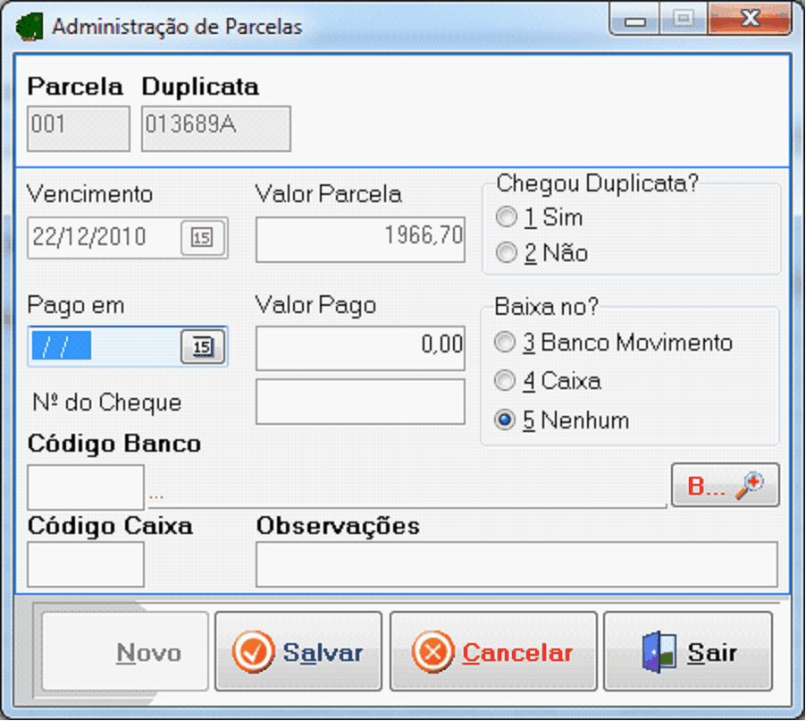 Parcela: Aqui você vera o numero da parcela que esta sendo baixada.