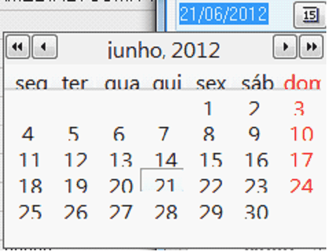 Aqui selecionacos o dia 21/06/2012, então o seu campo ficará assim: .
