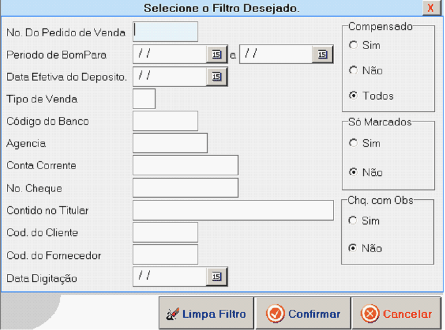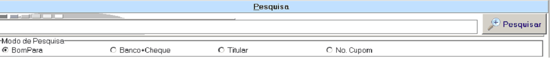 Esse campo tem a funcionalidade de realizar pesquisas entre os cheques cadastrados, existe a possibilidade de escolhermos entre: