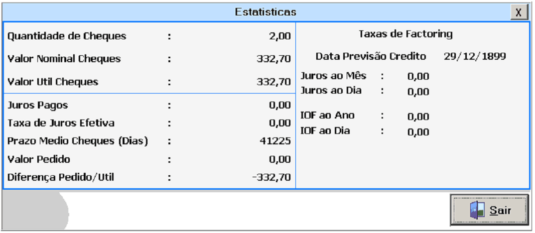 Abertos: Quantidade de cheques em aberto que existe cadastrado;
