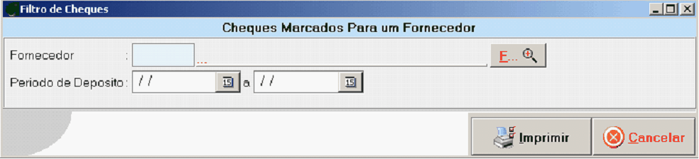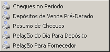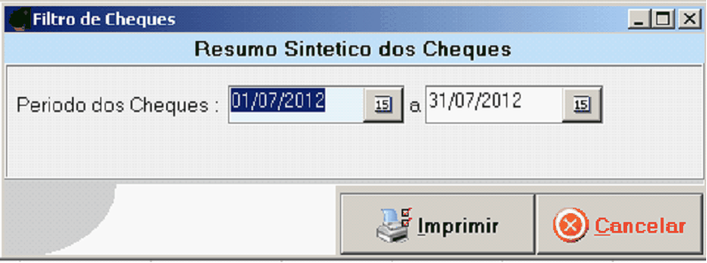 Podemos também gerar relatórios dos cheques cadastrados, apertando o botão de atalho ou, Crtl+P no teclado;