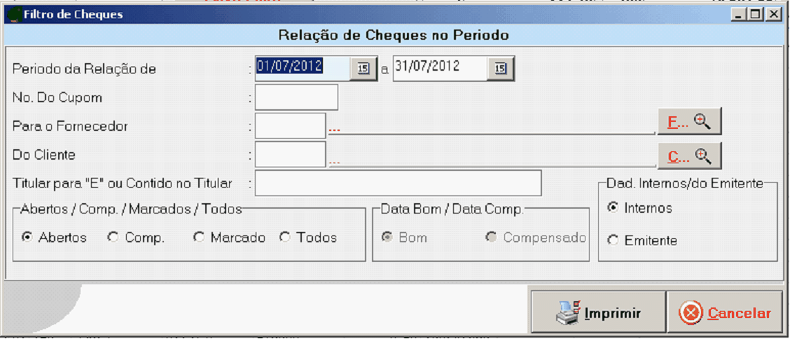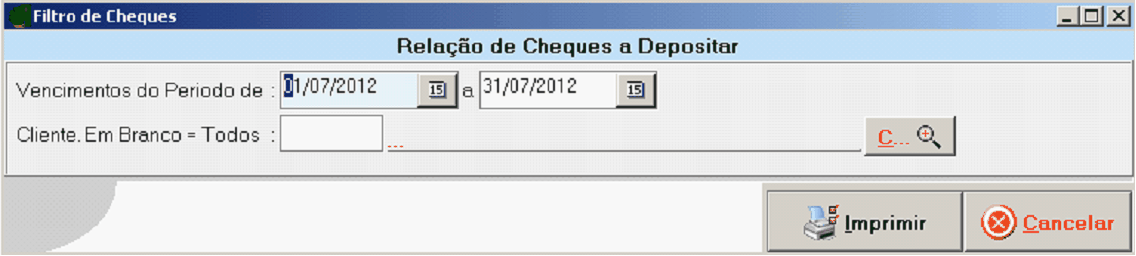 Definir um clfentc associado ao cheque, ou se deseja filtrar tcdos basta deixar em braço;