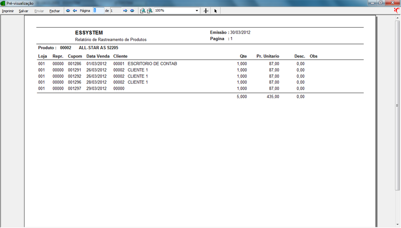 Qtde (informa a quantidade vendida do produto que esta sendo rastreado), Pr. Unitário (mostra o preço de venda unitário do produto),