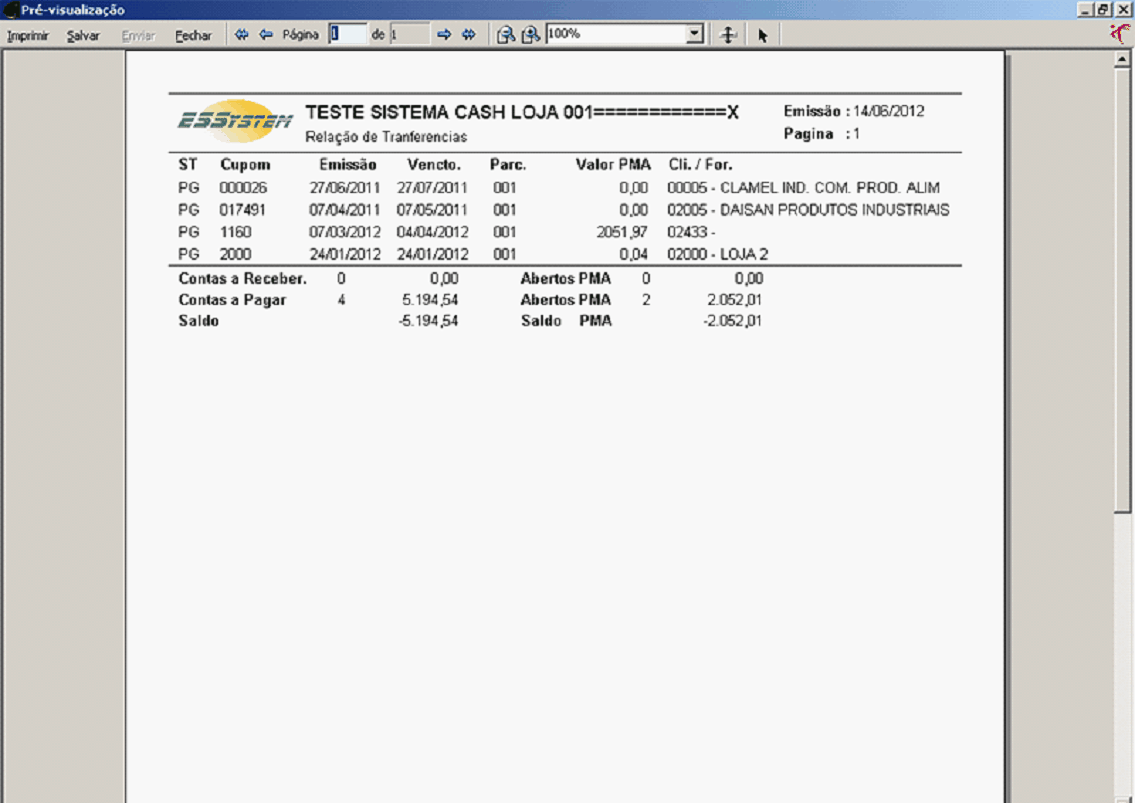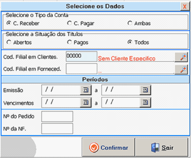 Nesse exemplo filtramos relatórios dos títulos do Contas a Pagar;
