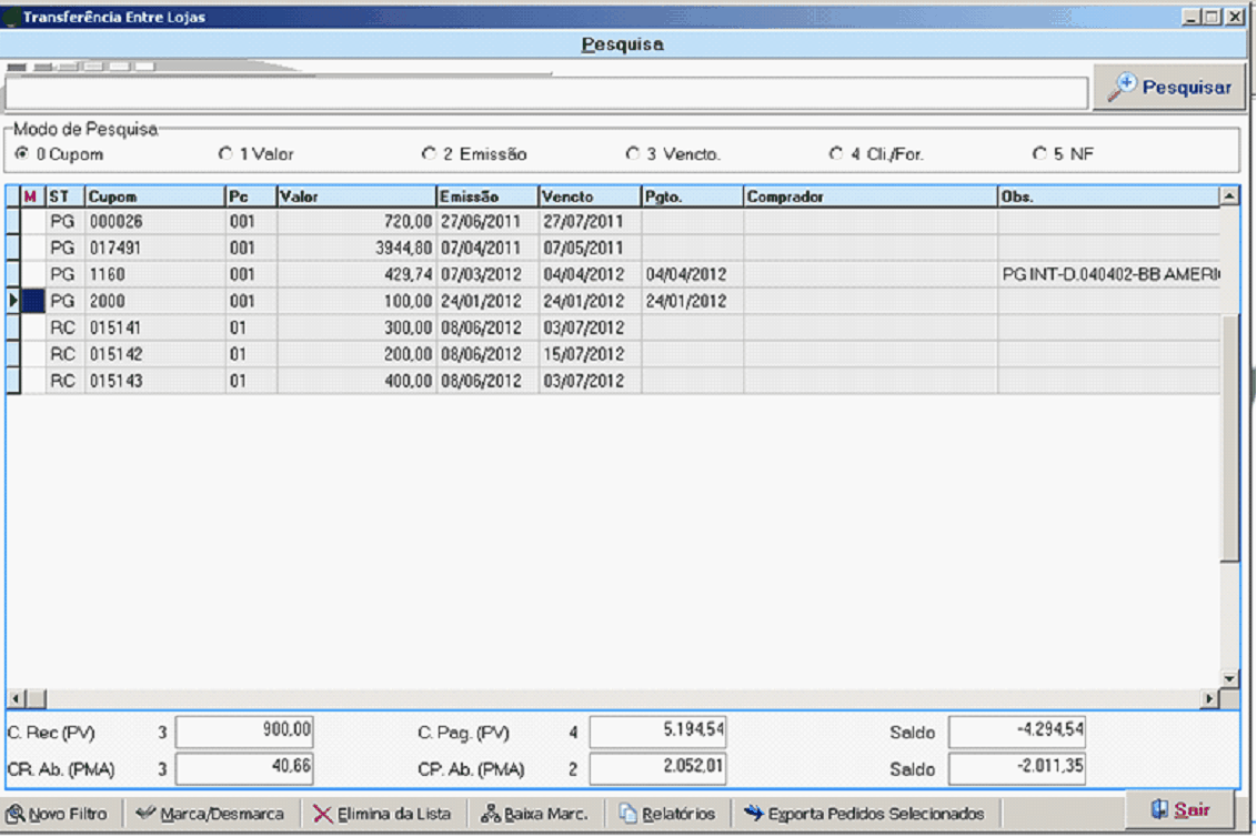 Peomite que vopê teoha uu maior controle dos cupons feito no tipm de venda “06” (Trantfnrência Entre Filiais), bem como exporte esses pedidos eletronicamente.