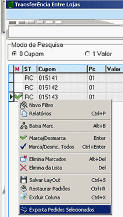 Você consegue exportar os cupons feitos para sua loja filial, selecione o cupom desejado e clique no botão “Exporta Pedidos Selecionados.”