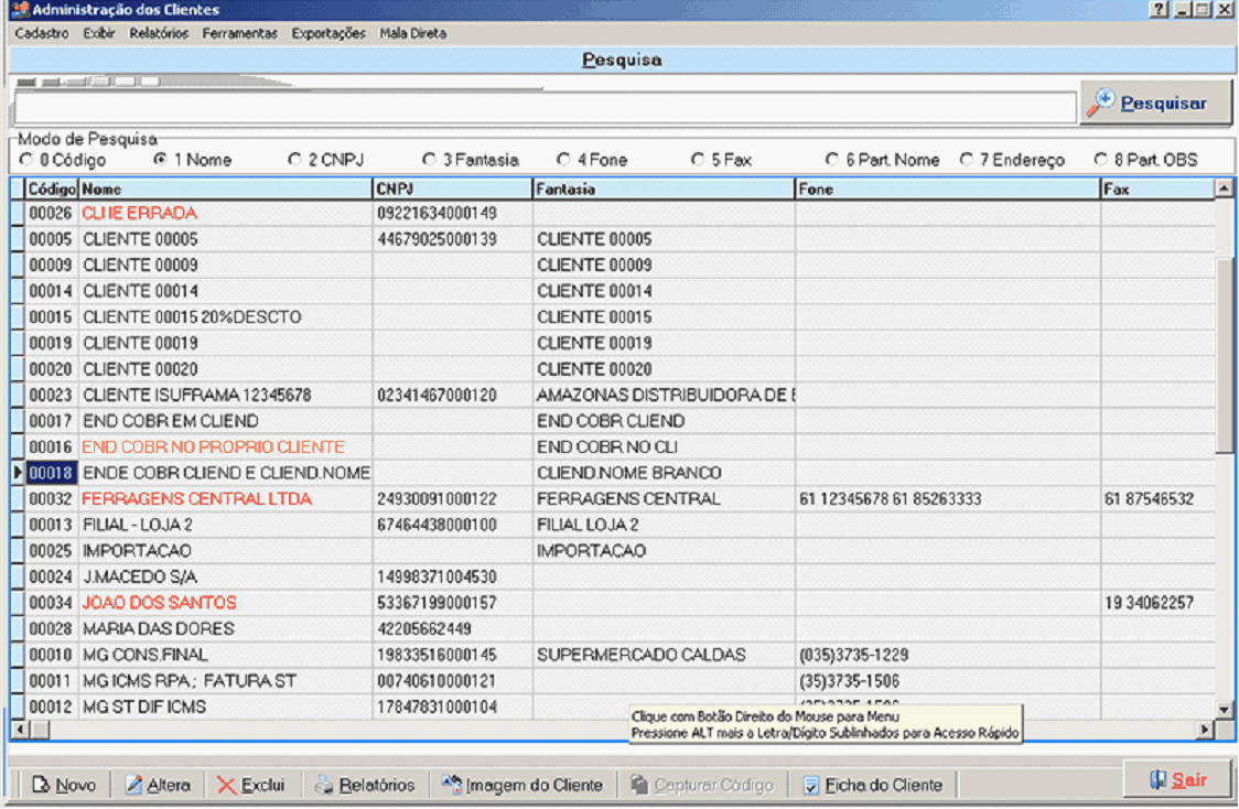 Aque nós vamos dnr o exemplo em Clientes, mas isso também é valido para Fornecedores, Tiansportadoras e outras Tabelas.